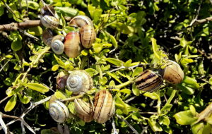 sowie kleinen Schnecken, die in den Sträuchern leben.