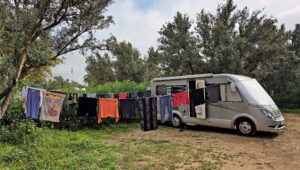 Gitti freut sich über die Möglichkeits des Wäschewaschens und auf