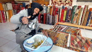 Nach der Führung lädt Rashid uns im angrenzenden Teppichgeschäft