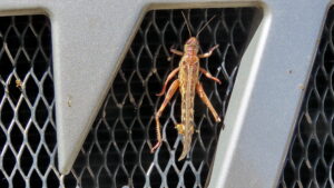 Plötzlich verdunkelt sich der Himmel und es prasselt wie wild auf unsere Windschutzscheibe, die Ursache ist ein Riesenschwarm von