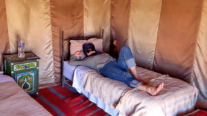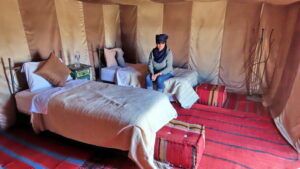 Wir haben für heute direkt bei Hassan, den Manager des Campingplatzes, eine 2 Tages Tour in die Wüste gebucht. Leider kommt in der Nacht ein sehr starker Sandsturm auf und wir möchten die Tour verschieben, aber der uneinsichtige Hassan antwortet nur stur „booked is booked“ – das Wetter ist wie es ist und der Wind wird sich schon wieder beruhigen!